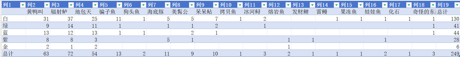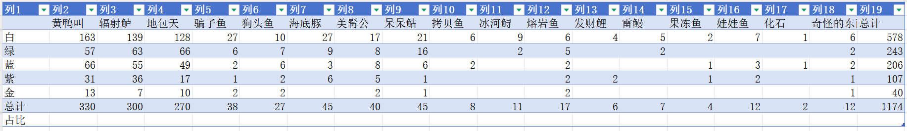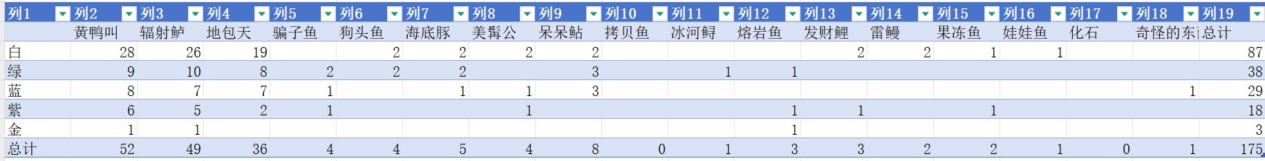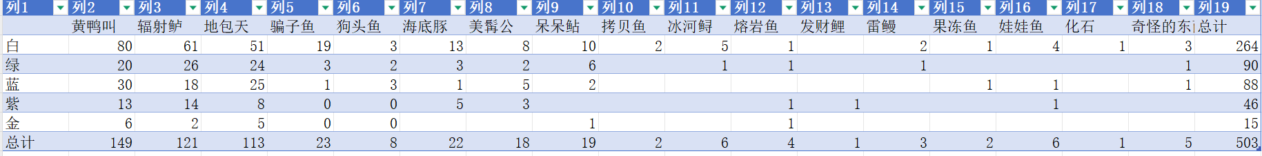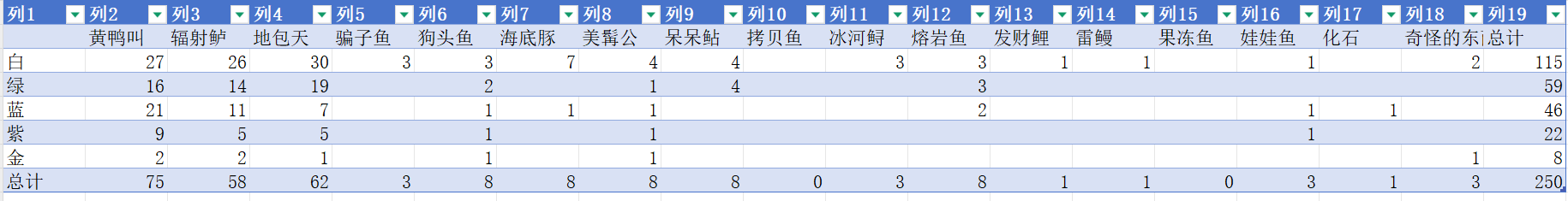 monki 有笨蛋不小心点到一键售出了,导致竿数变少(样本量减少,一天大概能钓到250竿左右) 今日 汇总: 共获得鱼干:1775 利润:900 (另外补充一点,为保证样本数据来源统一,垂钓点均为同一位置)