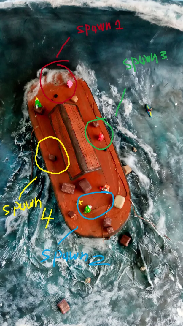 如果一共 2 队,每队 4 名玩家,则一队出生在船头,另一队在船尾。