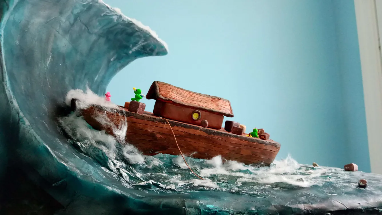 突然间,一记巨浪将横扫甲板。全员会通过环境音效得到提醒:船体发出的刺耳咯吱声,以及船头上扬时的海水拍打声。玩家抓住散落在甲板上的箱子或木桶,巨浪席卷整个甲板,把任何没能及时抓住物体的玩家扫进海中。方舟会非常缓慢地原地打转,使得每一波巨浪从不同角度扫过甲板、冲走玩家。