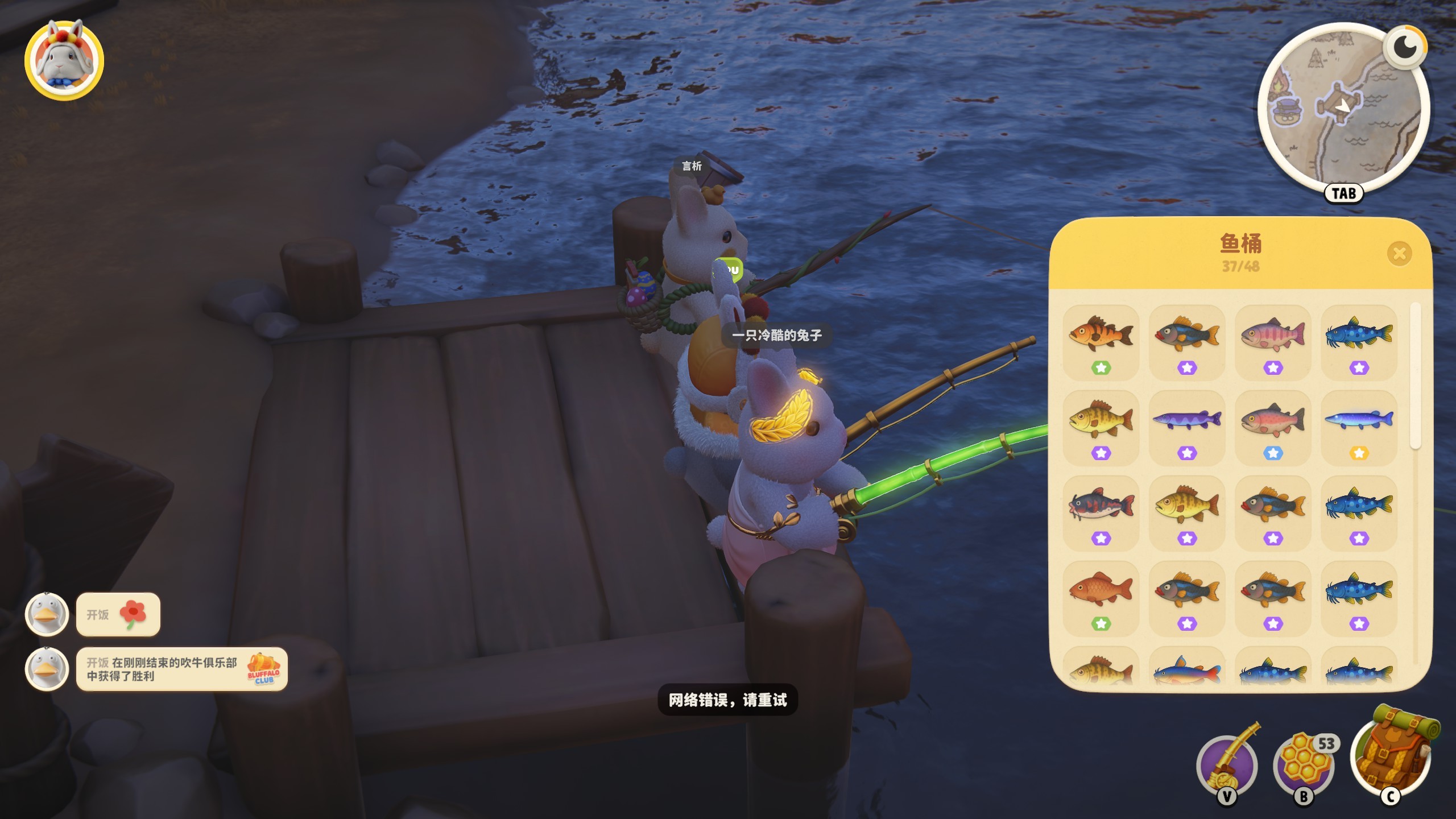 binbinjk001 Underbite 确实,我也是刚更新完就出现这种情况,打开桶放生就网络错误,必须放一条马上关闭桶的界面,再打开放生第二条,循环着弄,即便关了桶界面,底下还是会显示:网络错误,请重试,希望官方尽快修复这个问题~
