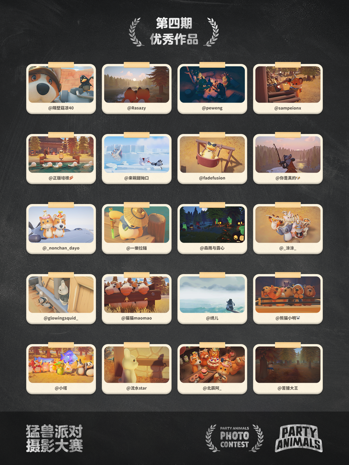 🎉 恭喜以下 6 名玩家的投稿脱颖而出,成功入选第 4 期猛兽派对摄影大赛的「本期最佳」,我们将为每位获奖者送出官方周边礼盒 & 一件专属定制手办!