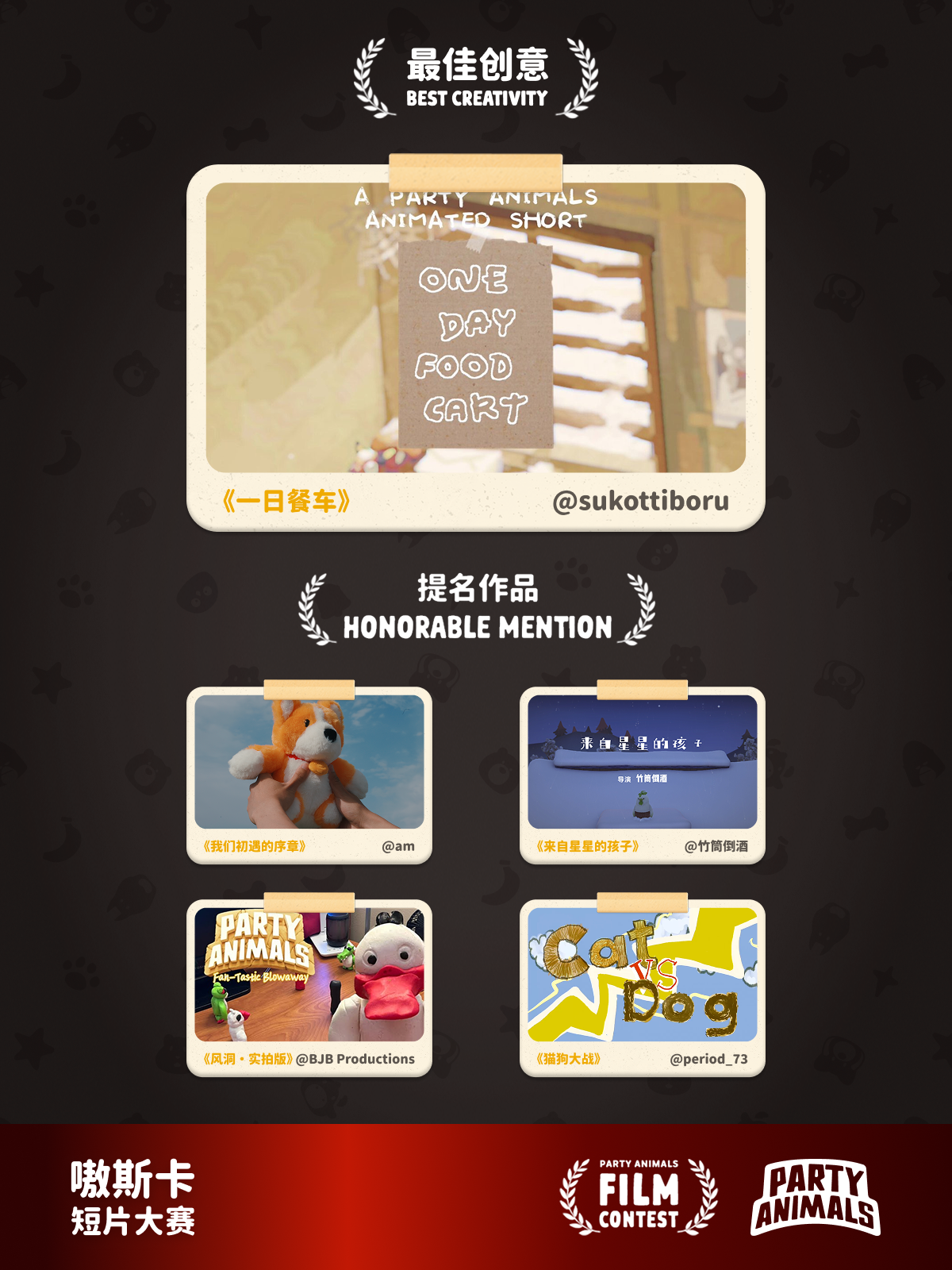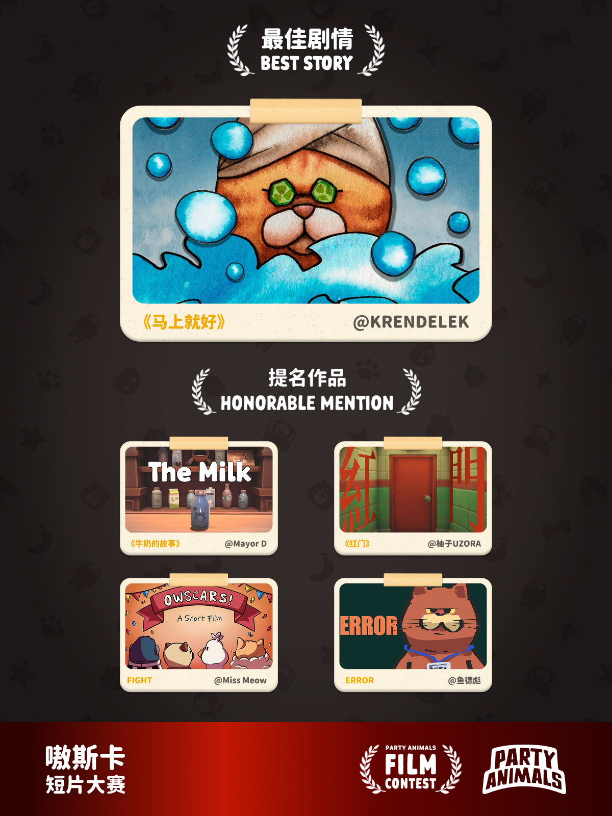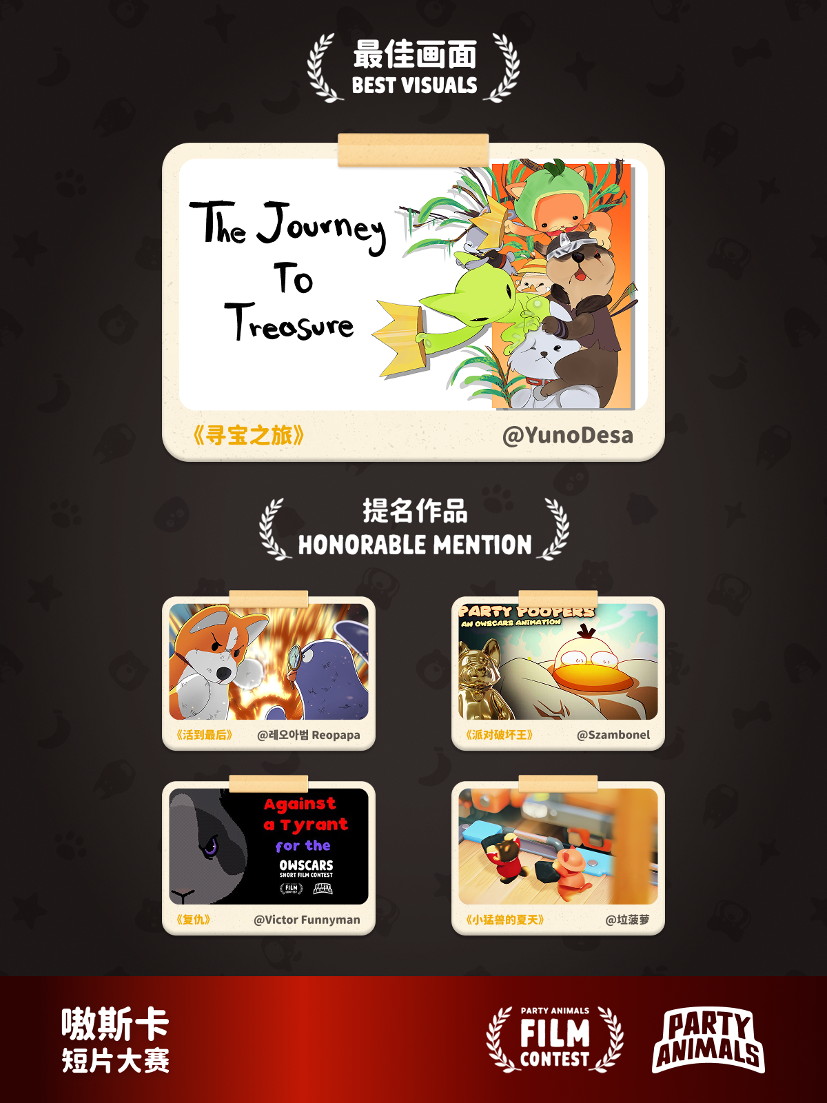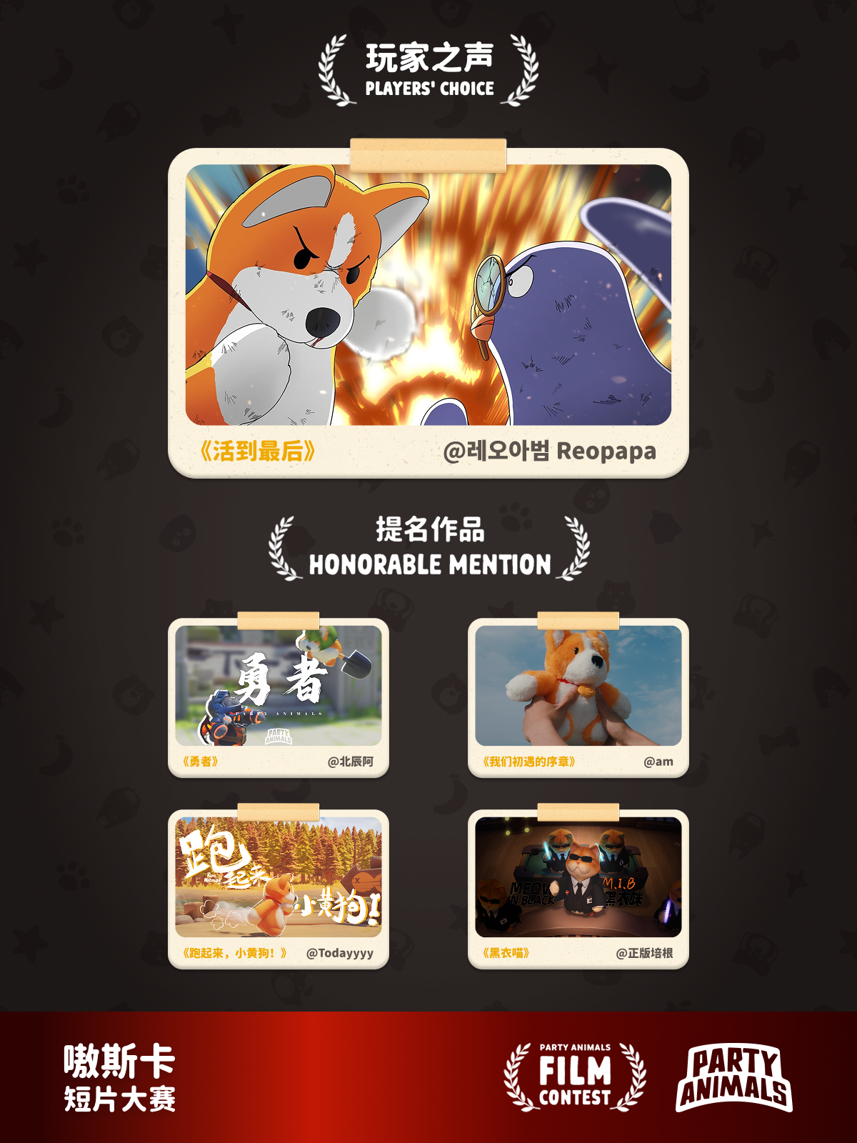 恭喜以下 5 名玩家的短片最终斩获嗷斯卡大奖!