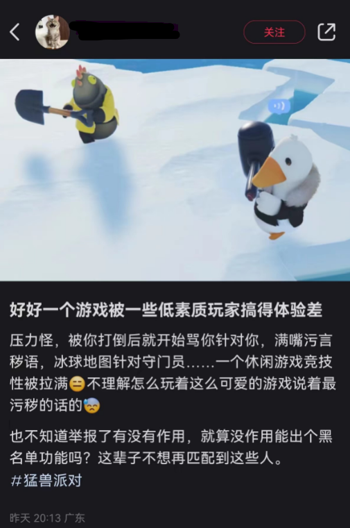 SINCHIKI 适用人群:喜欢开公频语音,但是心理承受能力一般的玩家。 主要作用:进入黑名单的玩家不会和自己再匹配到。 RT,今天逛小红书看到一位玩家的吐槽贴,就转了过来,感觉说的蛮在理的。 有一些低素质玩家确实会劝退部分心理接受能力不足的玩家,无缘无故被骂了多少会难受一阵子。 时间久了可能会对这款游戏失去兴趣。(有点像学生时代总被某个老师骂,导致对该学科失去兴趣hhh)
