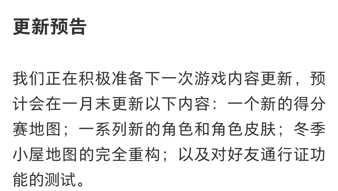 官方发布帖子了,本月25号更新通行证,可能其他更新也会一同上架。